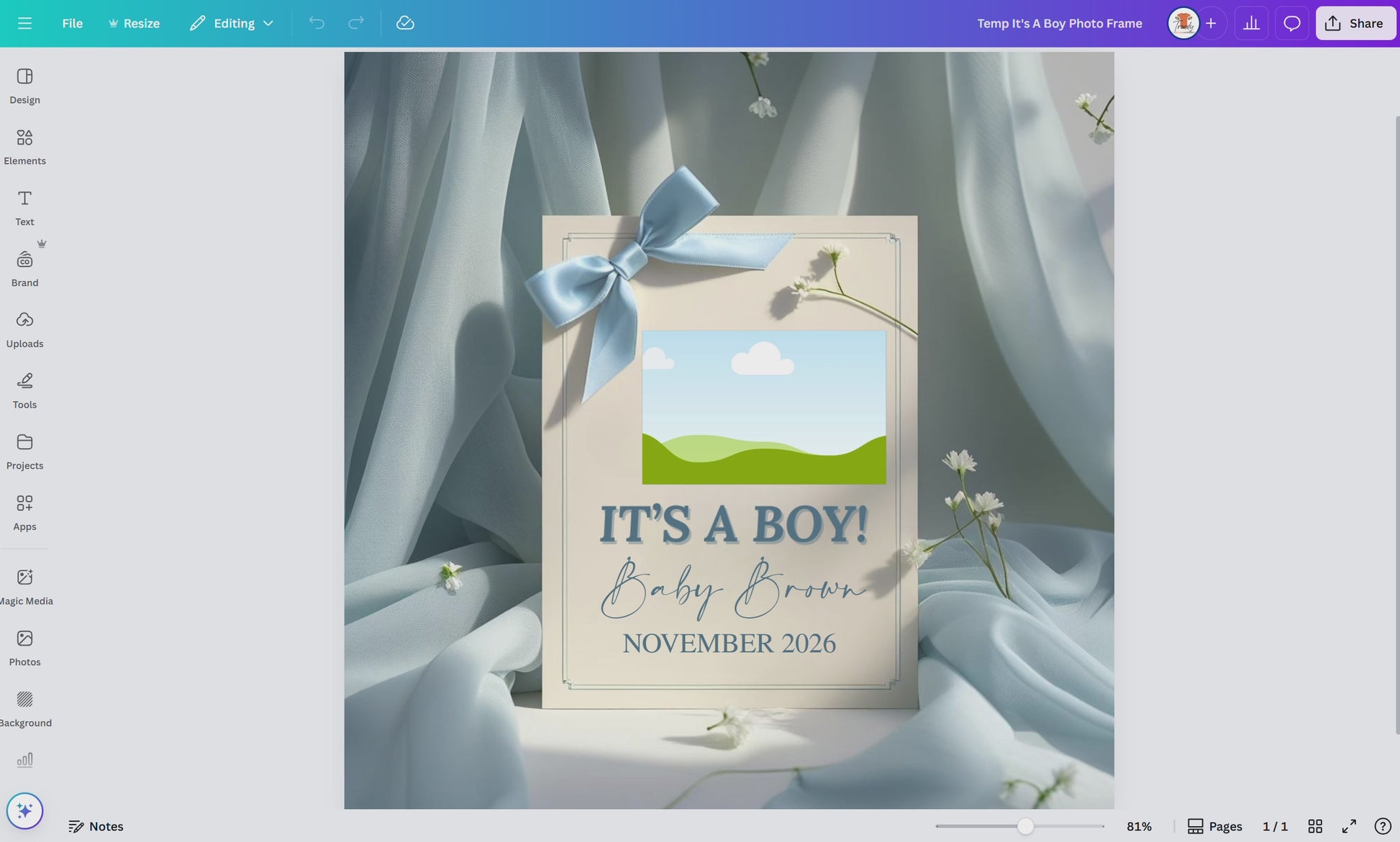 Get ready to share your joyful news with ease. The announcement is editable by you, letting you download it in minutes. Whether you want to print it and frame it, or share it instantly on social media, you have complete flexibility.