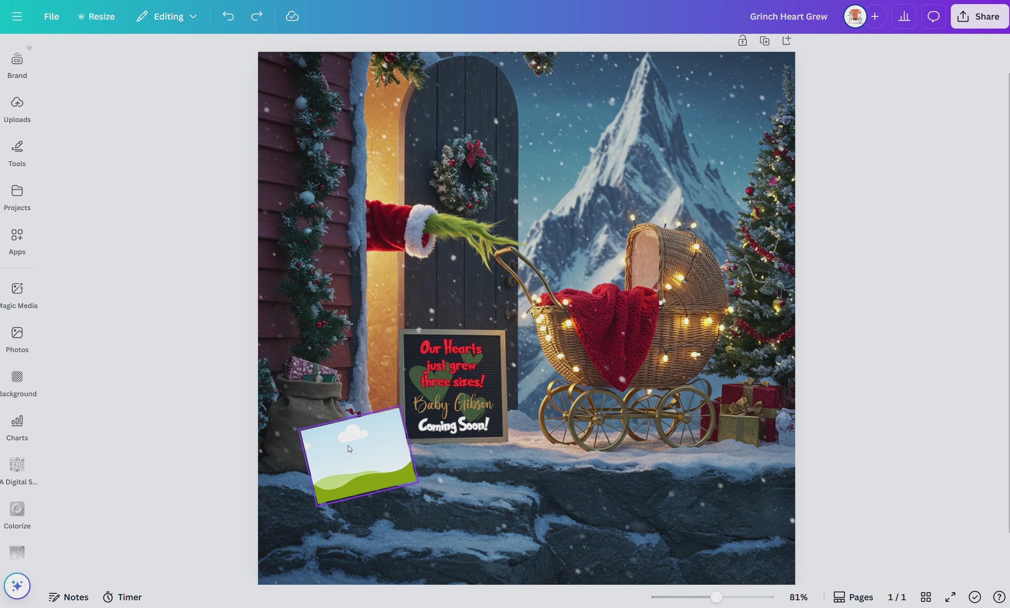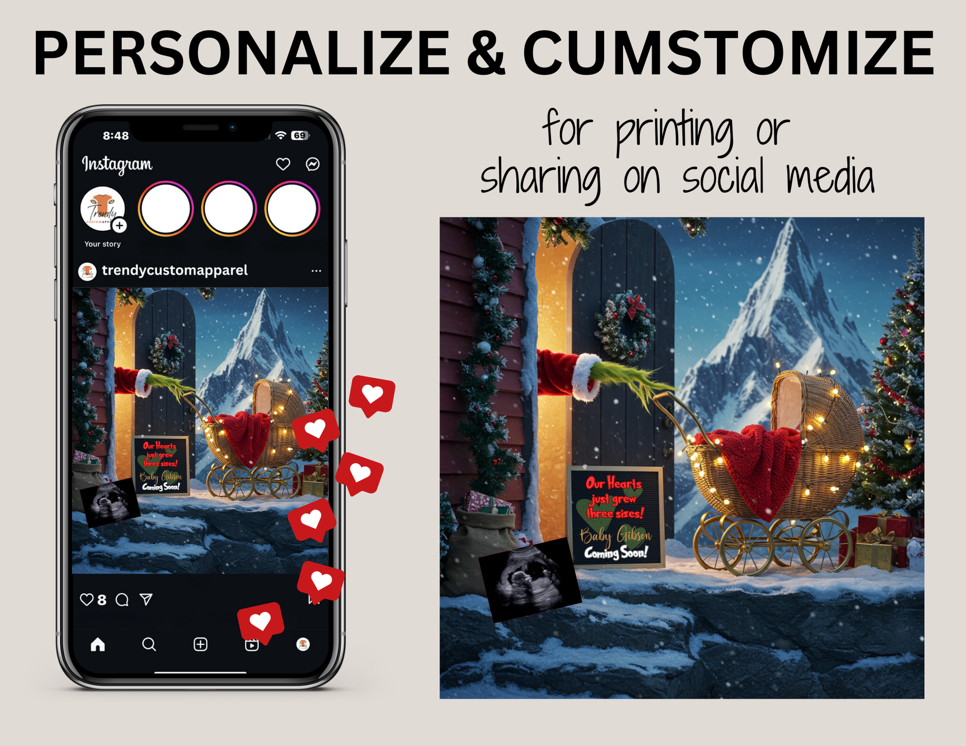 Bring a festive touch to your joyful announcement with this customizable Grinch-themed design. Whether you're sharing the exciting news with family and friends or making a splash on social media, this adorable announcement is the perfect way to spread happiness as you anticipate your little one's arrival.