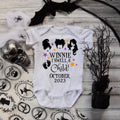 Are you excited about the forthcoming arrival of a little one? This Trendy Custom Apparel personalized pregnancy announcement onesie is the ideal way to share the good news with the world. The customized onesie features cute, witch-inspired illustrations with the text “Winnie I smell a child” and plenty of room to feature the due date. The onesie is available in black or white to coordinate with any fashion style.