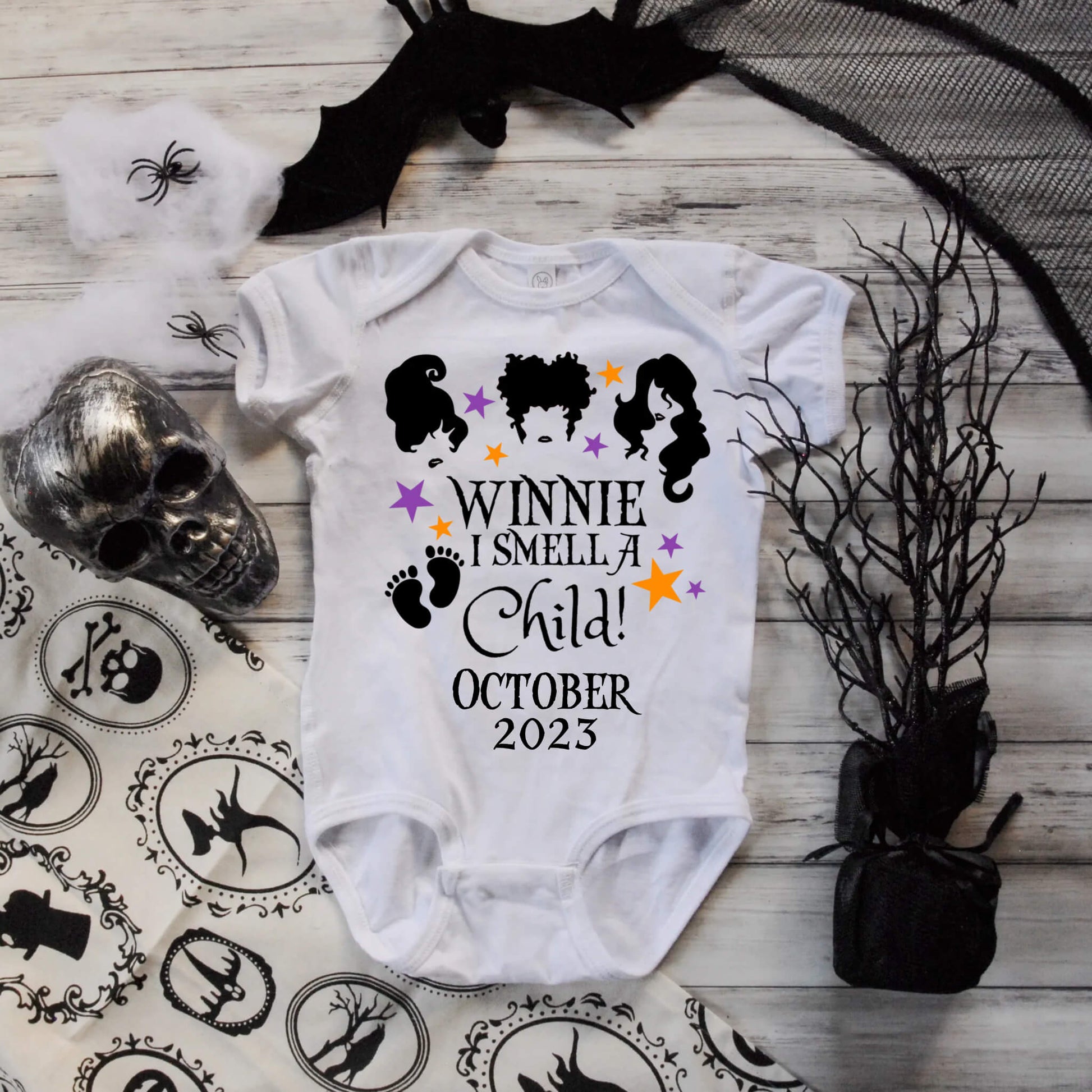 Personalized Pregnancy Announcement, Winnie I Smell A Child, Halloween Pregnancy Announcement, October Pregnancy Announcement, Customized Baby Announcement Onesie