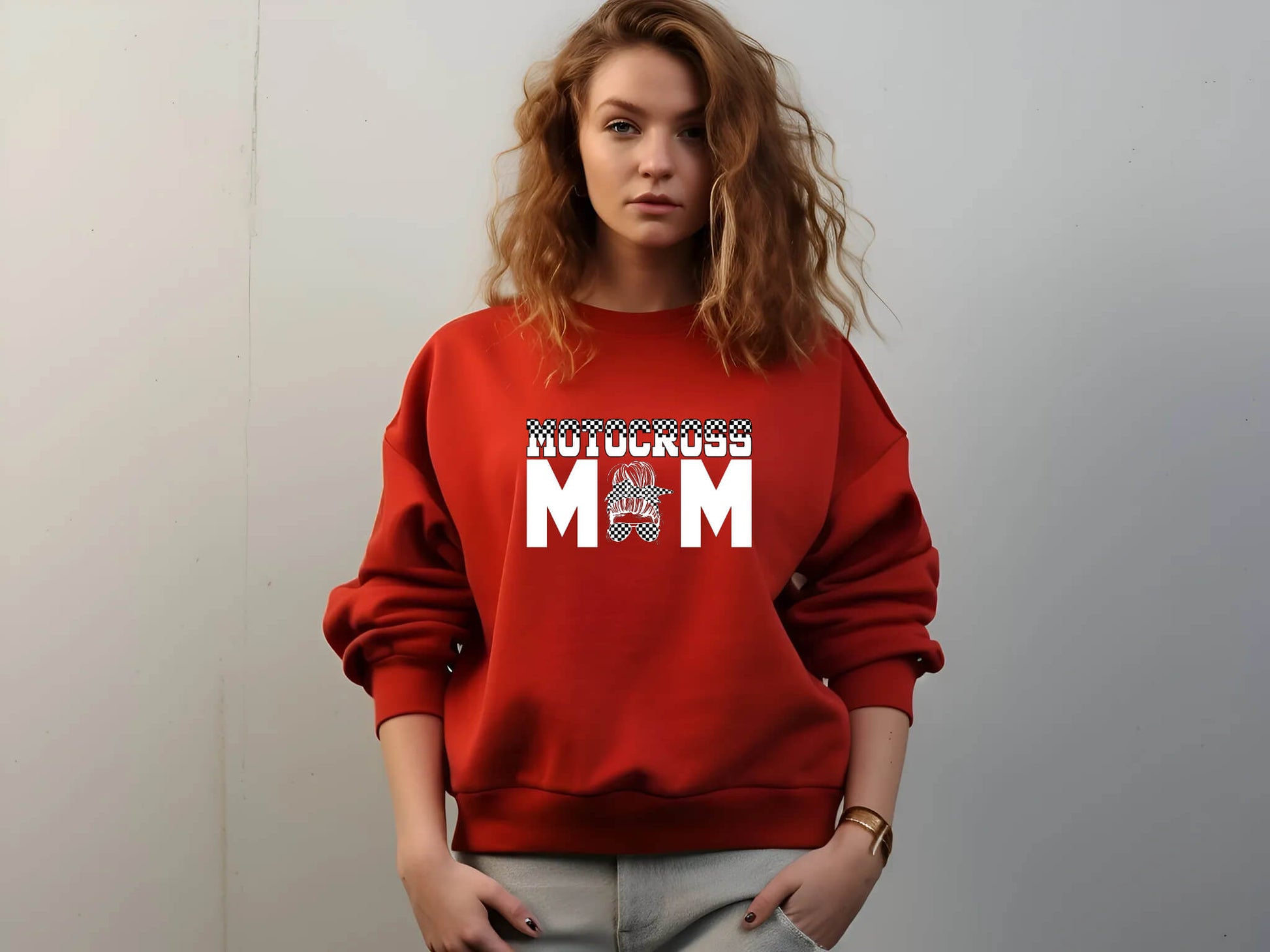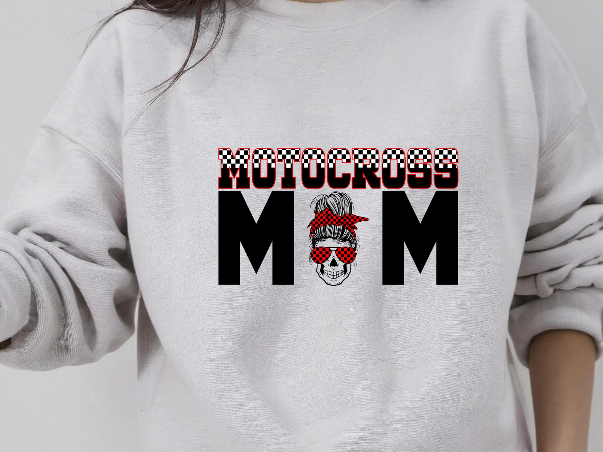 The graphic is printed with bright and vibrant colors in soft flex vinyl, ensuring a long-lasting and eye-catching print. Whether you're a motocross racing mom or just a dirt bike racing enthusiast, this sweatshirt is the perfect way to show your support and look stylish at the same time.