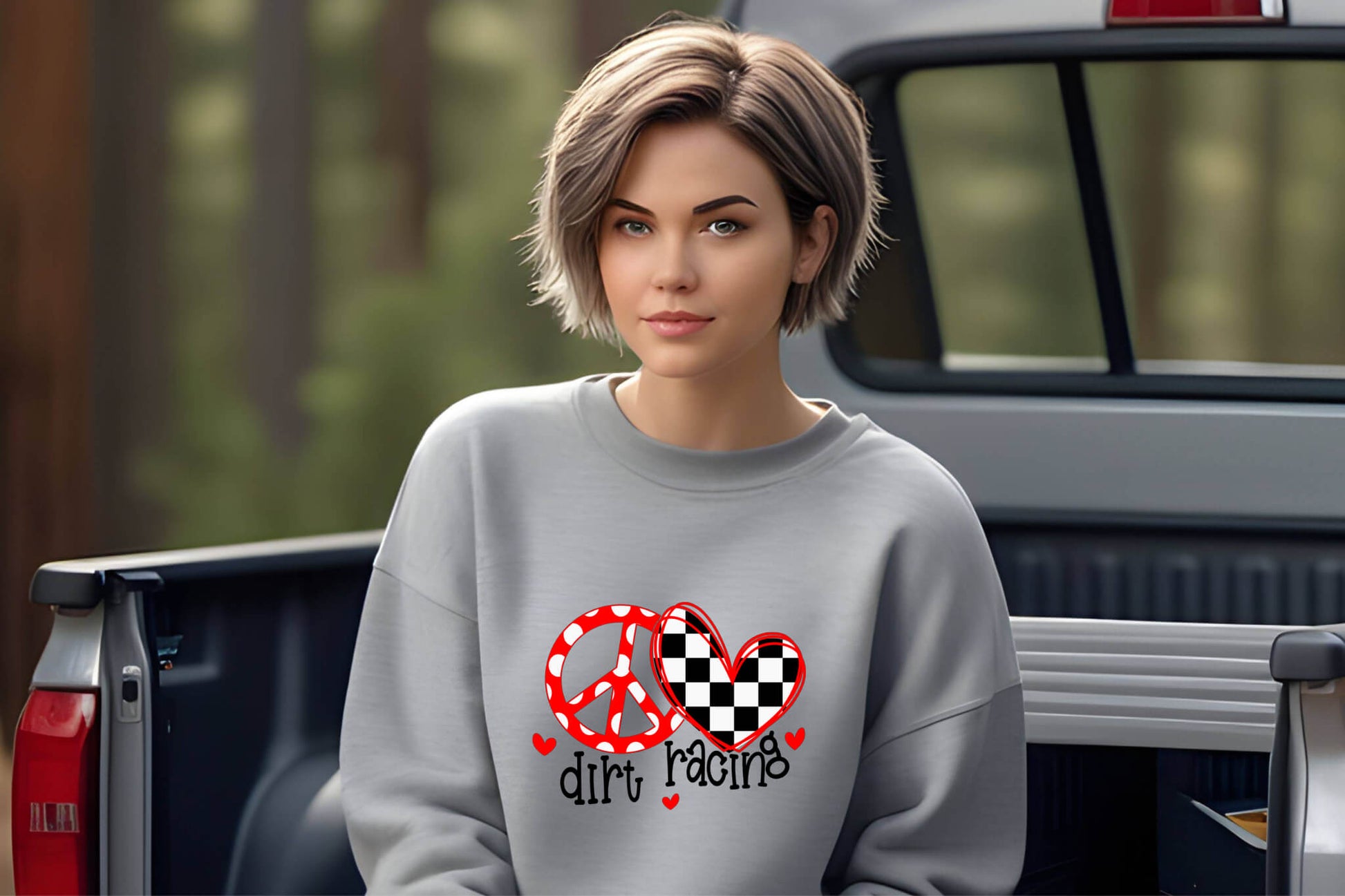 Don't miss out on the opportunity to rock this trendy and stylish piece from Trendy Custom Apparel. Purchase your Peace Love Dirt Racing Graphic Print today and show off your love for racing in style!